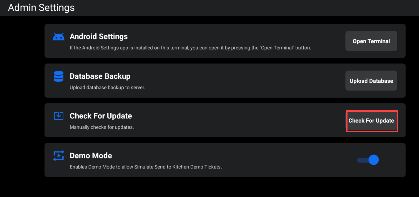 Description: Learn how to manually check for an update on SkyTab KDS (Kitchen Display System).