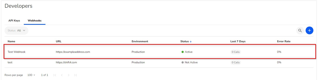 - Select a webhook from the onscreen list by clicking on it. A detail window will open.