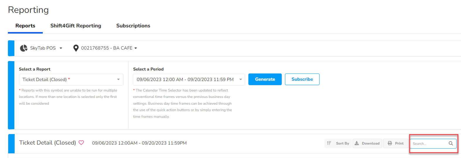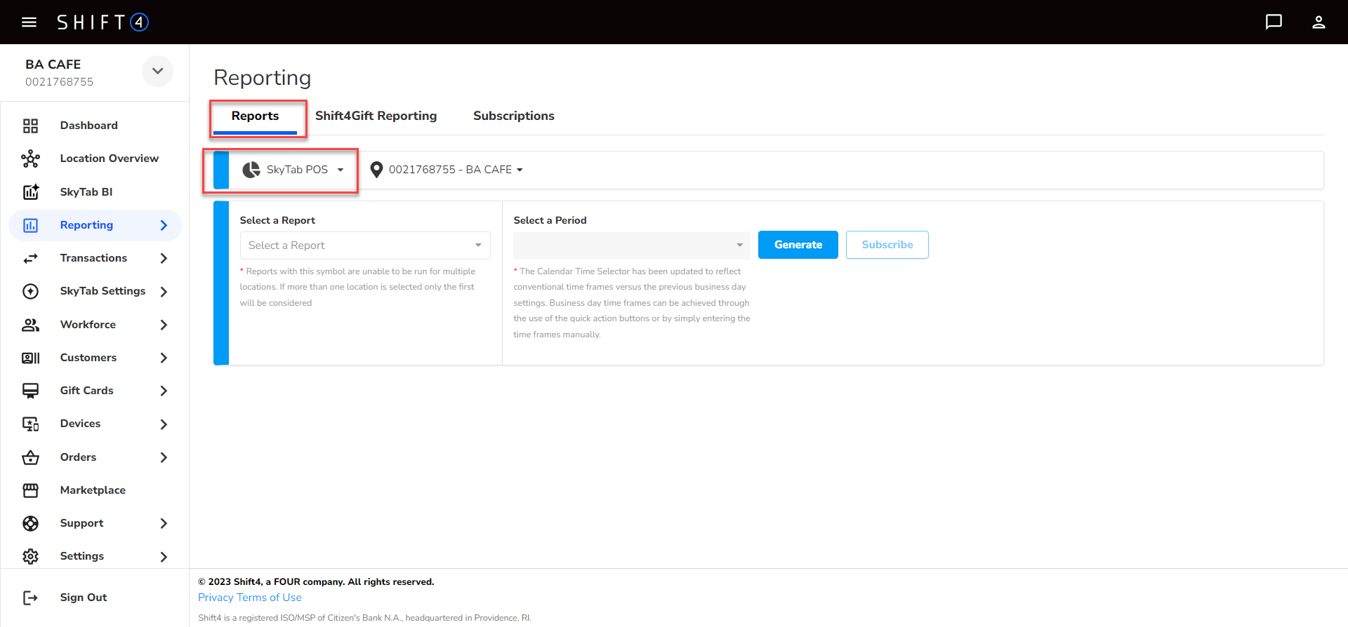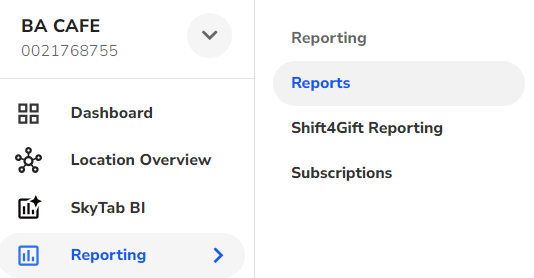 - On the Reports tab, select SkyTab POS from the pull-down.