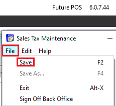 - Open the Back Office > Maintenances > Sales Tax.