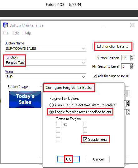 - Change the Function to Forgive Tax.