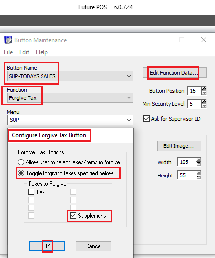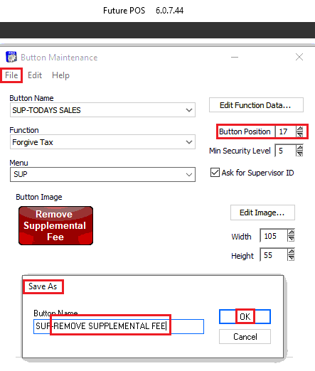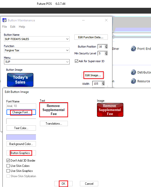 The button to remove Supplemental Fee is now on the screen. - Change the Security or Ask for Supervisor ID according to the merchant's wishes.