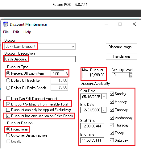 - Set Max Discount to $9999.99.