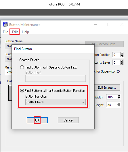 - Select OK. It may bring up a report displaying all of the buttons associated with that function. You must be sure to change every button. If it doesn’t open a report, it will take you directly to the button.