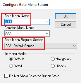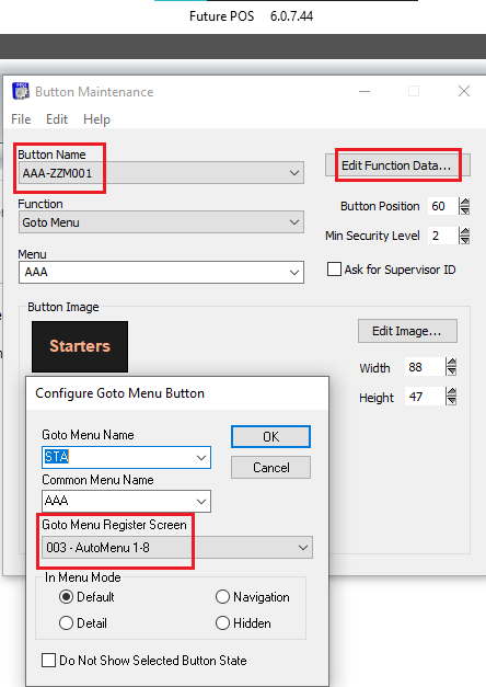 - Select Edit Function Data. Take a look at the Goto Menu Register Screen. Note the name of that screen.