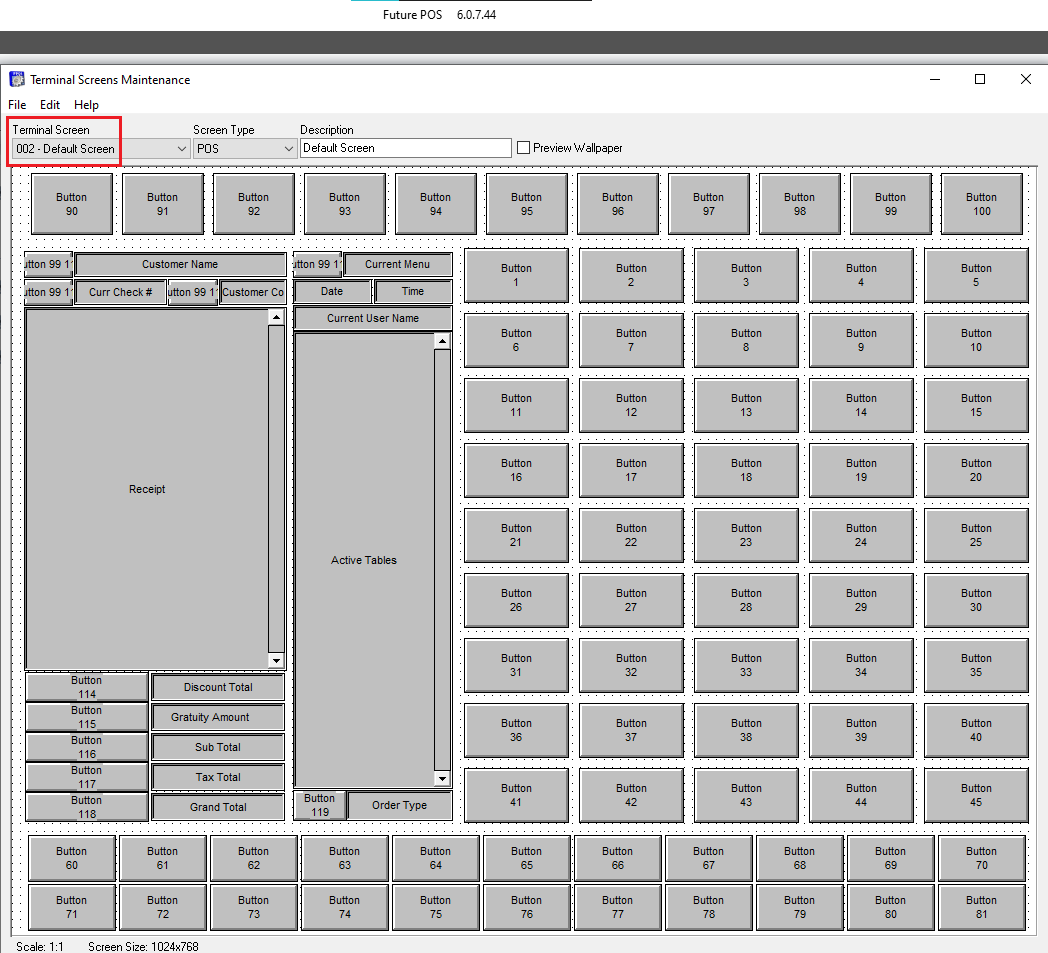 Note: Be sure to check the Server Functions and Manager screens as well. They likely have a different screen. - Once you have determined which Terminal Screens to find, open Maintenances > Terminal Screens.
