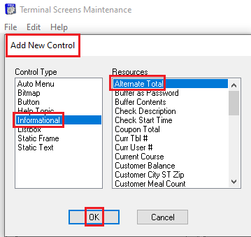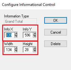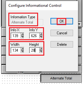 - Once you have resized the Receipt box and moved the Bitmaps, Static Text, or Buttons, along with the Informational boxes associated with those items up, you’ll have to add the new Informational Control called Alternate Total.