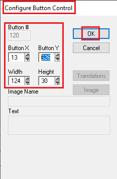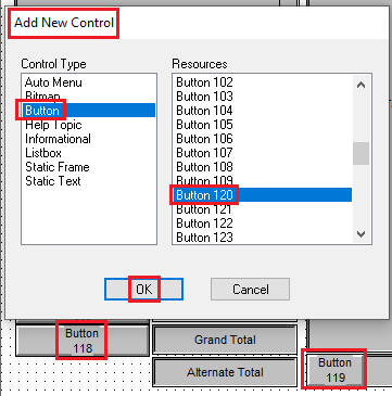 - Select the appropriate control type. In this example it’s a Button. The next in sequence is 120.