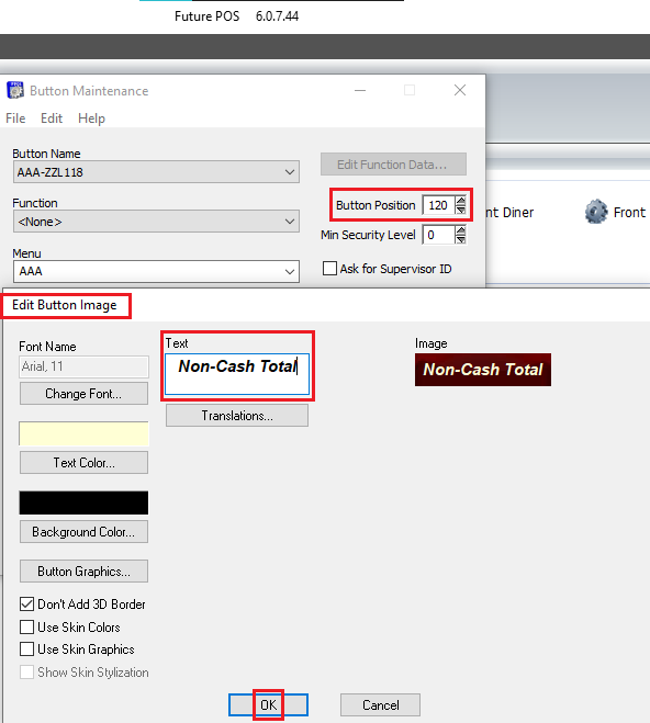 - To create a button for Non-Cash Total, use the Cash Total button as a template.