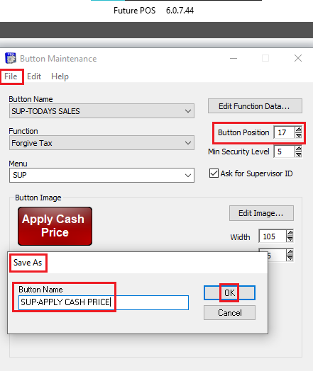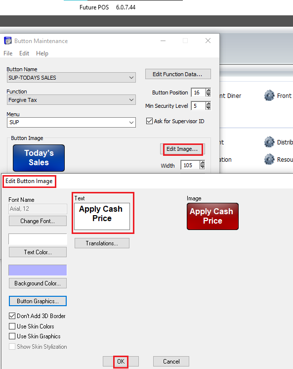 The button to Apply Cash Price is now on the screen. - Change the Security and/or Ask for Supervisor ID according to the merchant's wishes.
