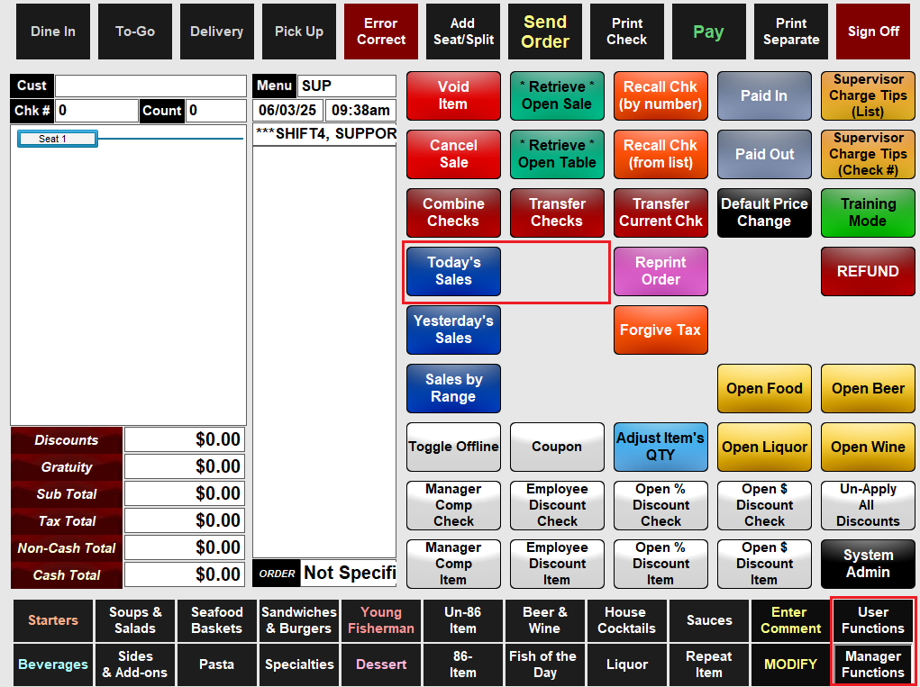 - Find a location for the button. In this example, it will be next to the Today’s Sales button, under the Manager Functions screen.