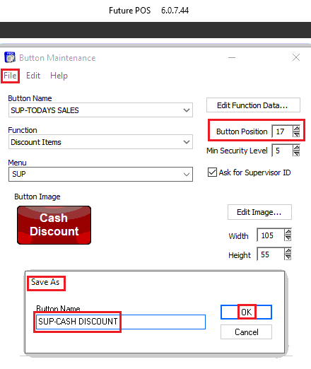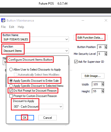 - Name the button with the same prefix and call it "Cash Discount."