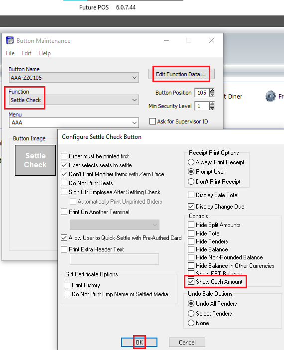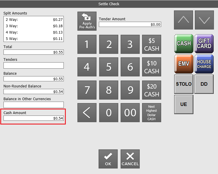 Cash Amount on the Settle Check Button
