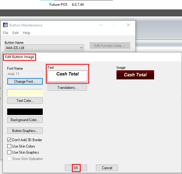 - If using a Button, you will have to change the name to "Cash Total."