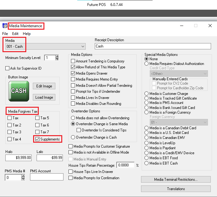 - Enable Supplemental Fee under Media Forgives Tax.