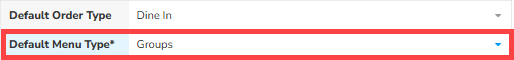 For this example, we are setting up the Cashier's Default Menu Type as Groups.