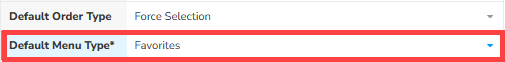 - Under the Default Menu Type pull-down, select Departments, Groups, or Favorites.