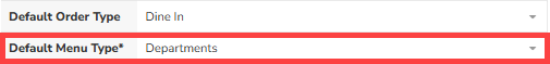 For this example, we are setting up the Server's Default Menu Type as Departments.