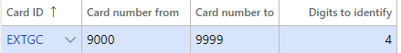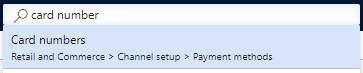 - Navigate to Retail and Commerce > Channel setup > Payment methods > Card numbers.