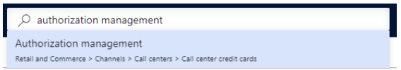 - Once complete, navigate to Retail and Commerce > Channels > Call centers > Call center credit cards > Authorization management.