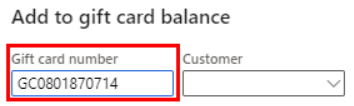- This will bring up the Add to gift card balance form. Enter the gift card number into the form.