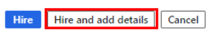 - Fill in all of the employee information, and once done, select Hire and add details, which will bring you to the details page of the employee information.