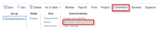 - Navigate to the Commerce tab on the header, then select Associate existing identity.