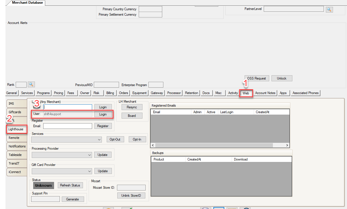 - Navigate to Titan > Web > Lighthouse, and select the Shift4Support User Login button.