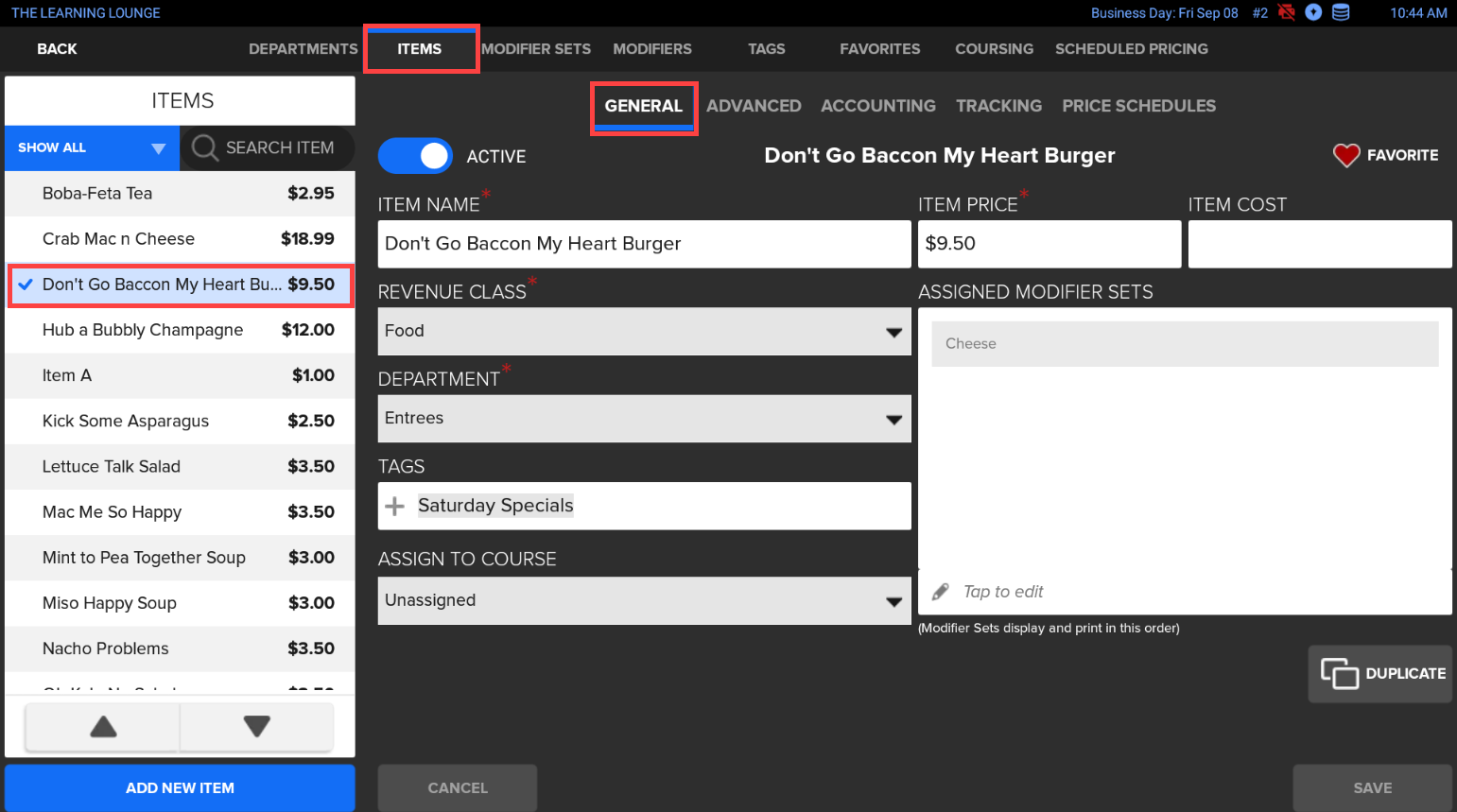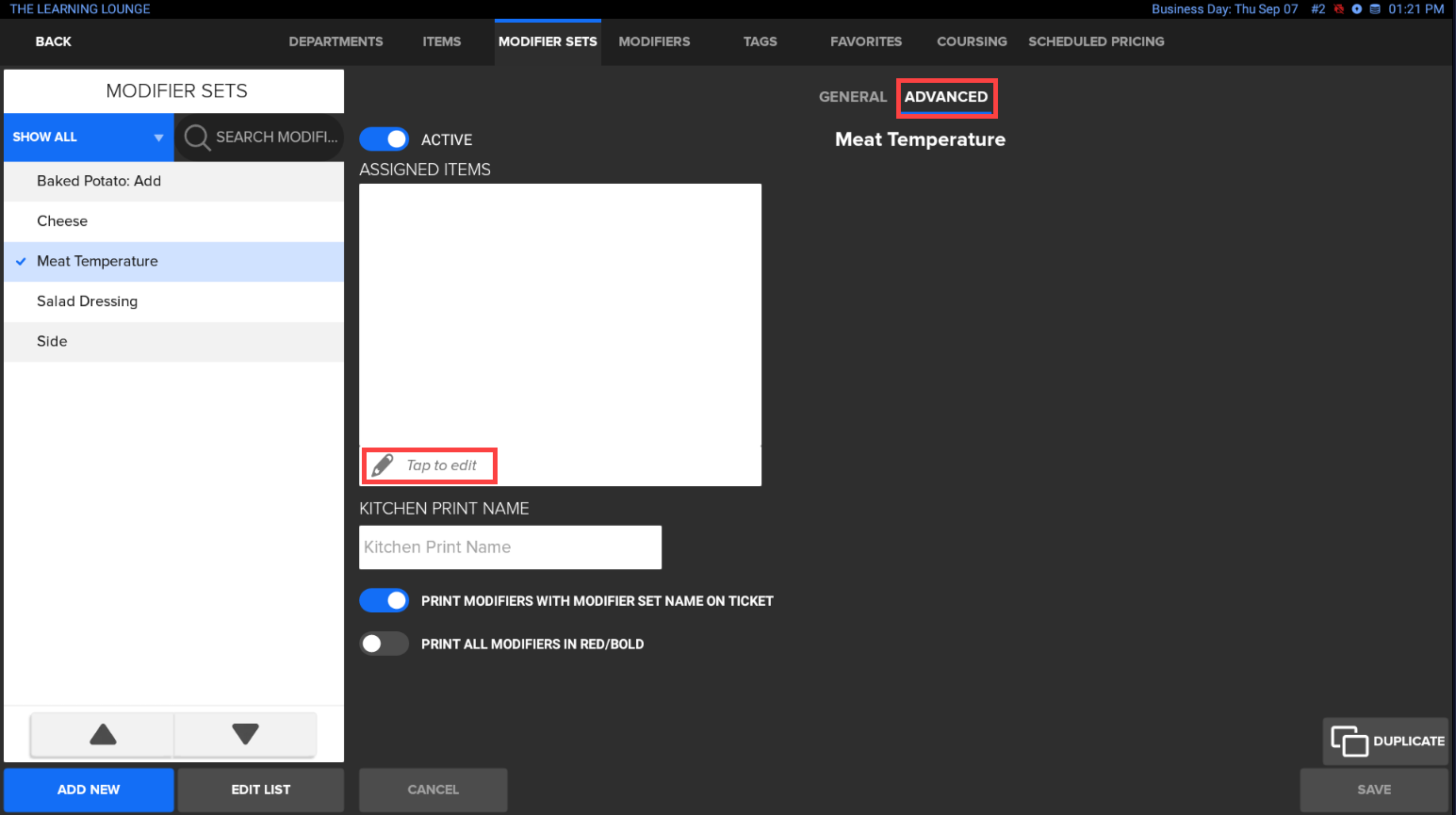 Description: Connect a Modifier Set to items within the SkyTab POS system. Modifier Sets serve as the categories for Modifiers.