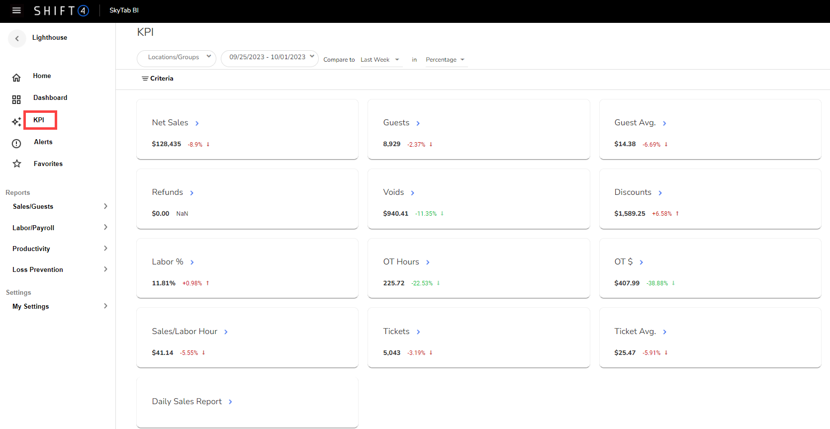 STBI Tip: If discounts go up, it shows in red. - Labor %: This lets you know how much labor you used