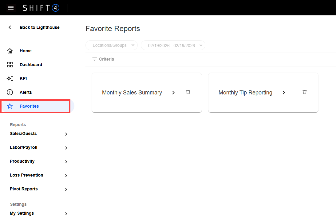 - Select Favorites from the left navigation menu.
