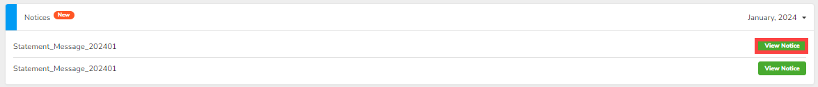 Note: There are no notices for the month if it is grayed out in the calendar. - To complete, press the green View Notice button.
