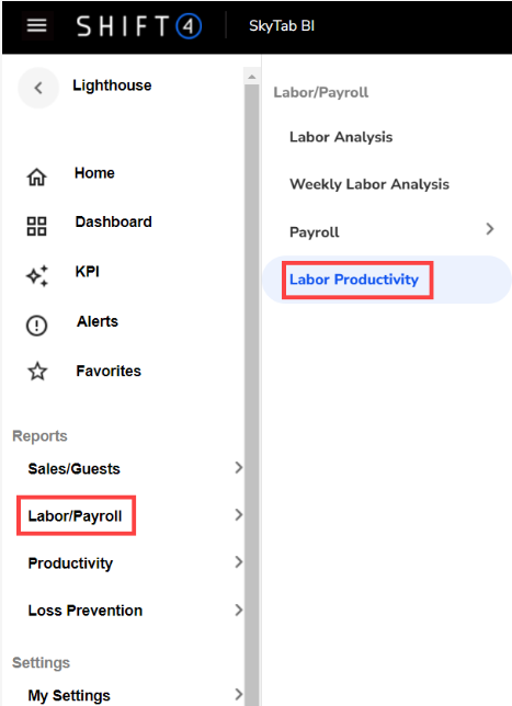 The Labor Productivity is a fantastic report to help control labor costs. To access the report, click on Labor/Payroll > Labor Productivity.