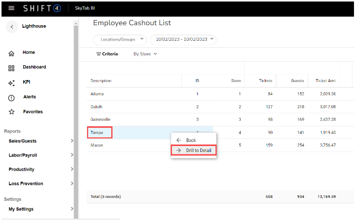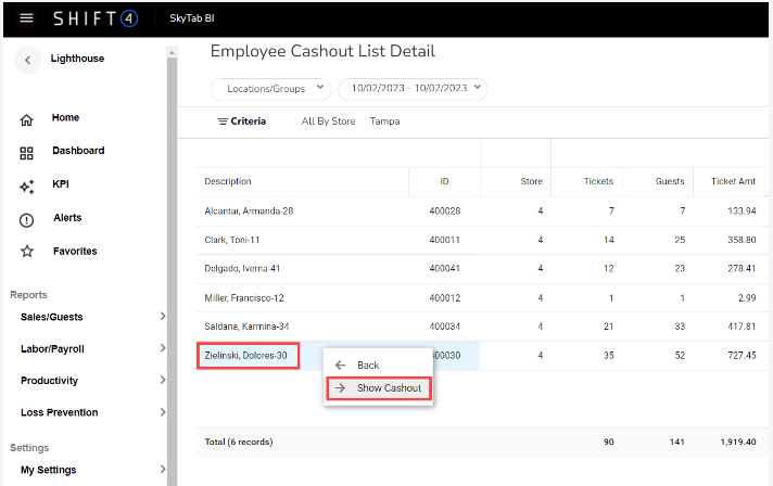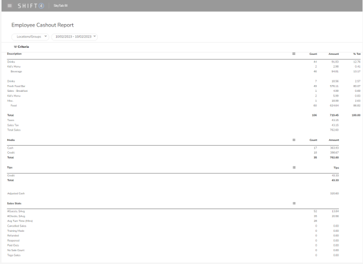 Run an Employee Cashout Report on SkyTab Business Intelligence