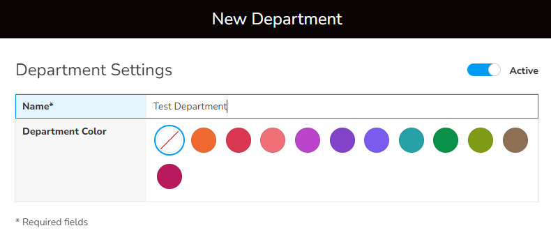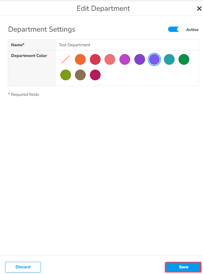 - Slide the Active toggle in the top right OFF on the Edit Department screen.