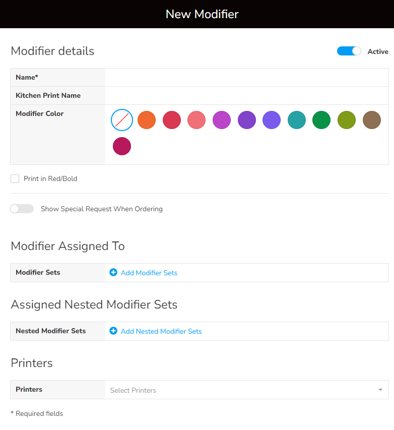 - On the New Modifier screen, fill in the required fields.