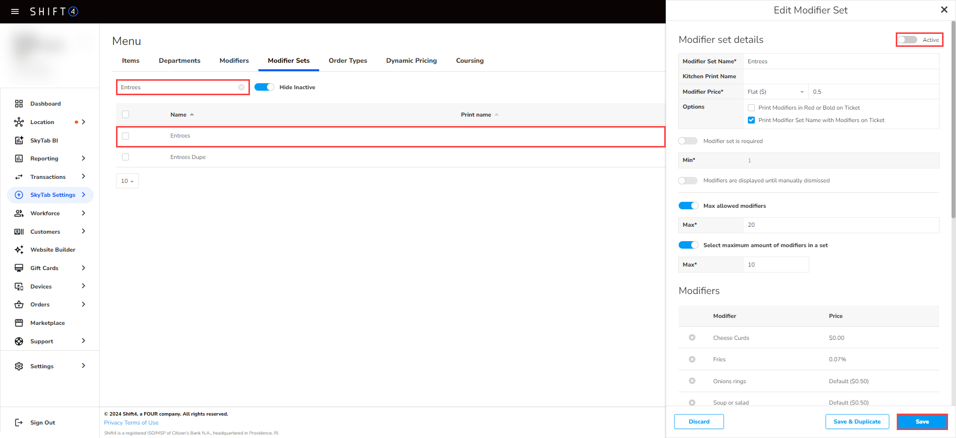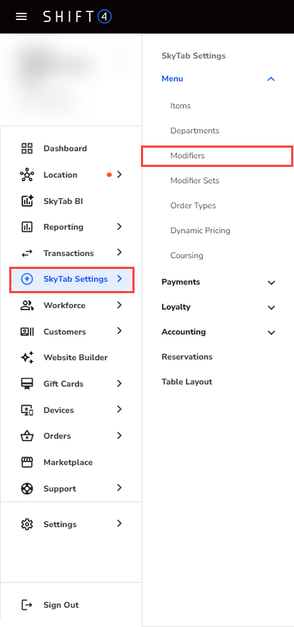 - Navigate to SkyTab Settings > Menu > Modifier Sets.