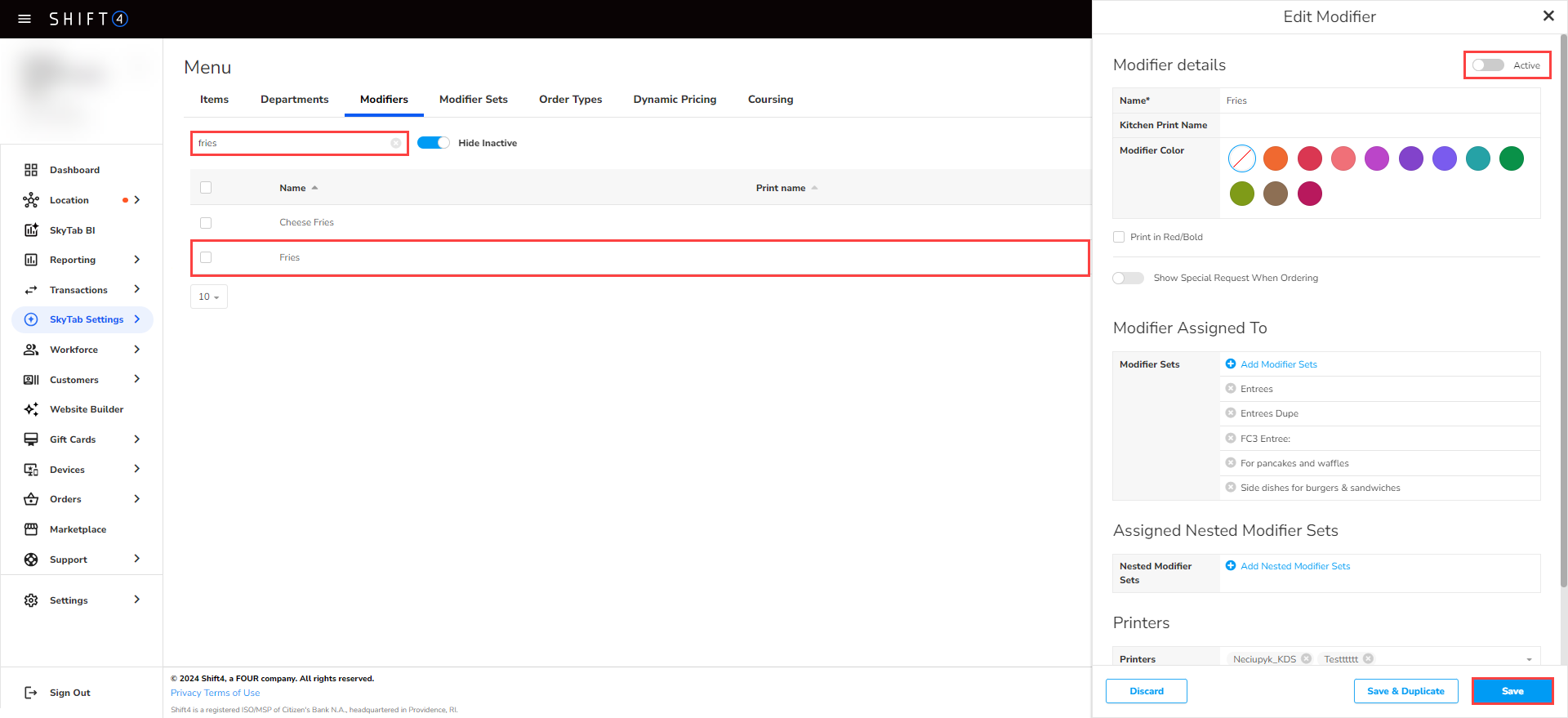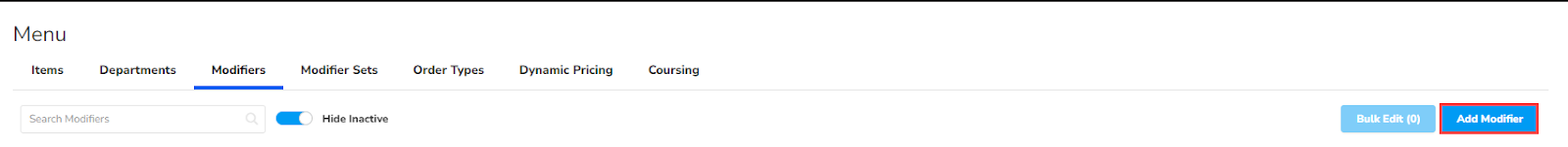 Note: SkyTab POS software is not capable of deleting or removing modifiers once they are in the POS system. The only way to remove or delete modifiers from the menu is to make them inactive.