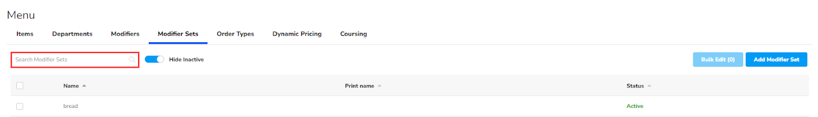 Note: SkyTab POS software is not capable of deleting or removing modifier sets once they are in the POS system. The only way to remove or delete modifier sets from the menu is to make them inactive.