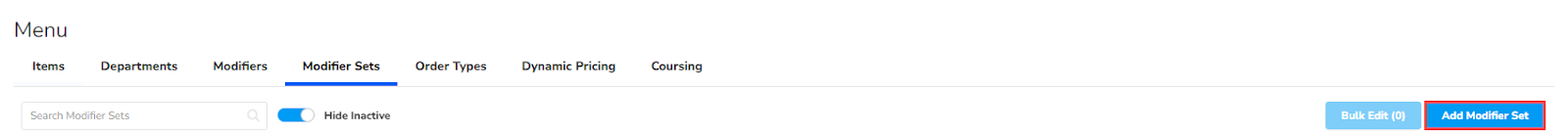 From the Modifier Sets tab, press the blue Add Modifier Set button on the top right corner of the screen.
