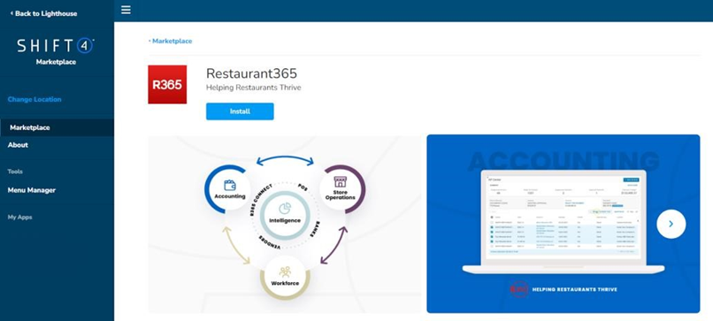Description: Please follow the steps below to install the Restaurant365 Marketplace integration.