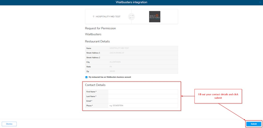 - If you do not have a Waitbusters account, leave this option blank and a Waitbusters representative will contact you to assist you with an account setup.