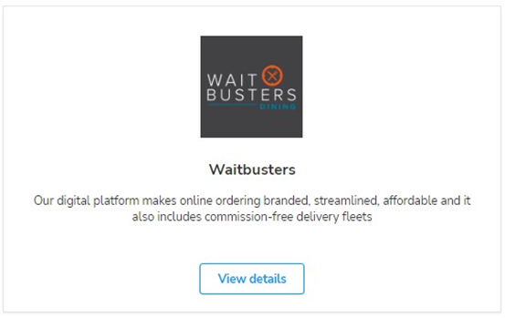 - Select Marketplace from the left navigation bar, then select Waitbusters. Select View details to access the Waitbusters application page.