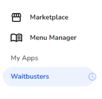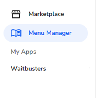 Note: The Manage button within the Waitbusters application in Marketplace will now take you to the Waitbusters login screen. - Now that you have an online ordering application installed, you can select the Menu Manager within Marketplace on the left-side navigation bar.