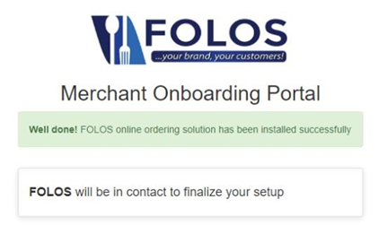 - Once the installation is finished, you will receive a message stating that FOLOS will be in contact to finalize your setup.