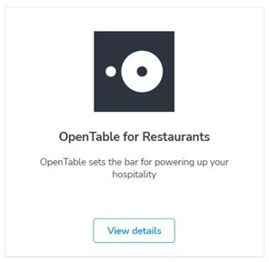 - Select Marketplace from the left navigation bar, then find the OpenTable for Restaurants app and select View Details to access the OpenTable application page.