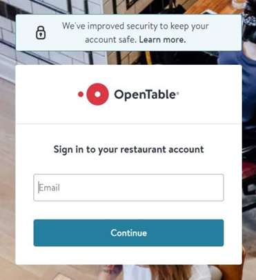 - Select the Homepage button to be redirected to the OpenTable website. Fill out the form on the OpenTable website and an OpenTable representative will get back to you. Alternatively, you ca go here.