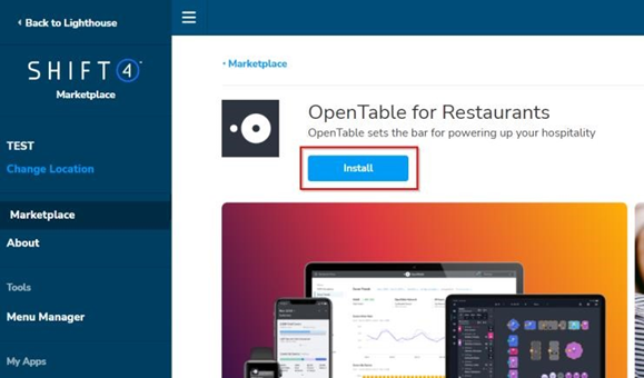Description: Please follow the steps below to install the OpenTable Marketplace integration.