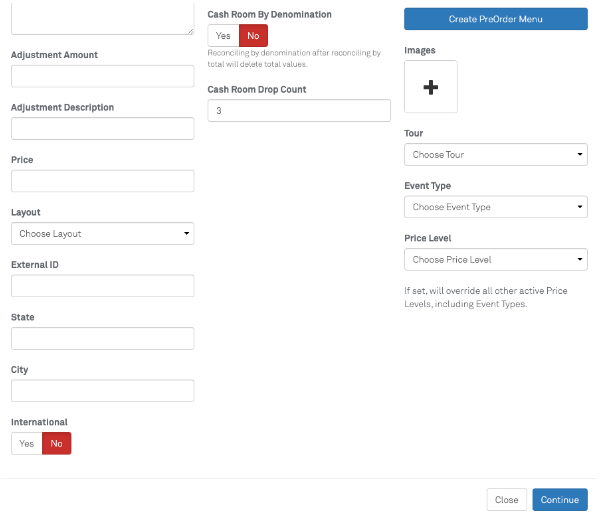 - Configure the Cash Room options and assign an event type or price level if needed.