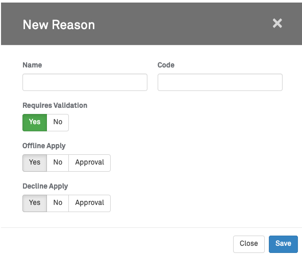 - Requires Validation: Whether the Reason will need Manager Approval.